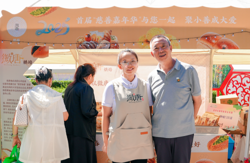 李纹带着自己亲手做的甜品走进首届慈善嘉年华现场
