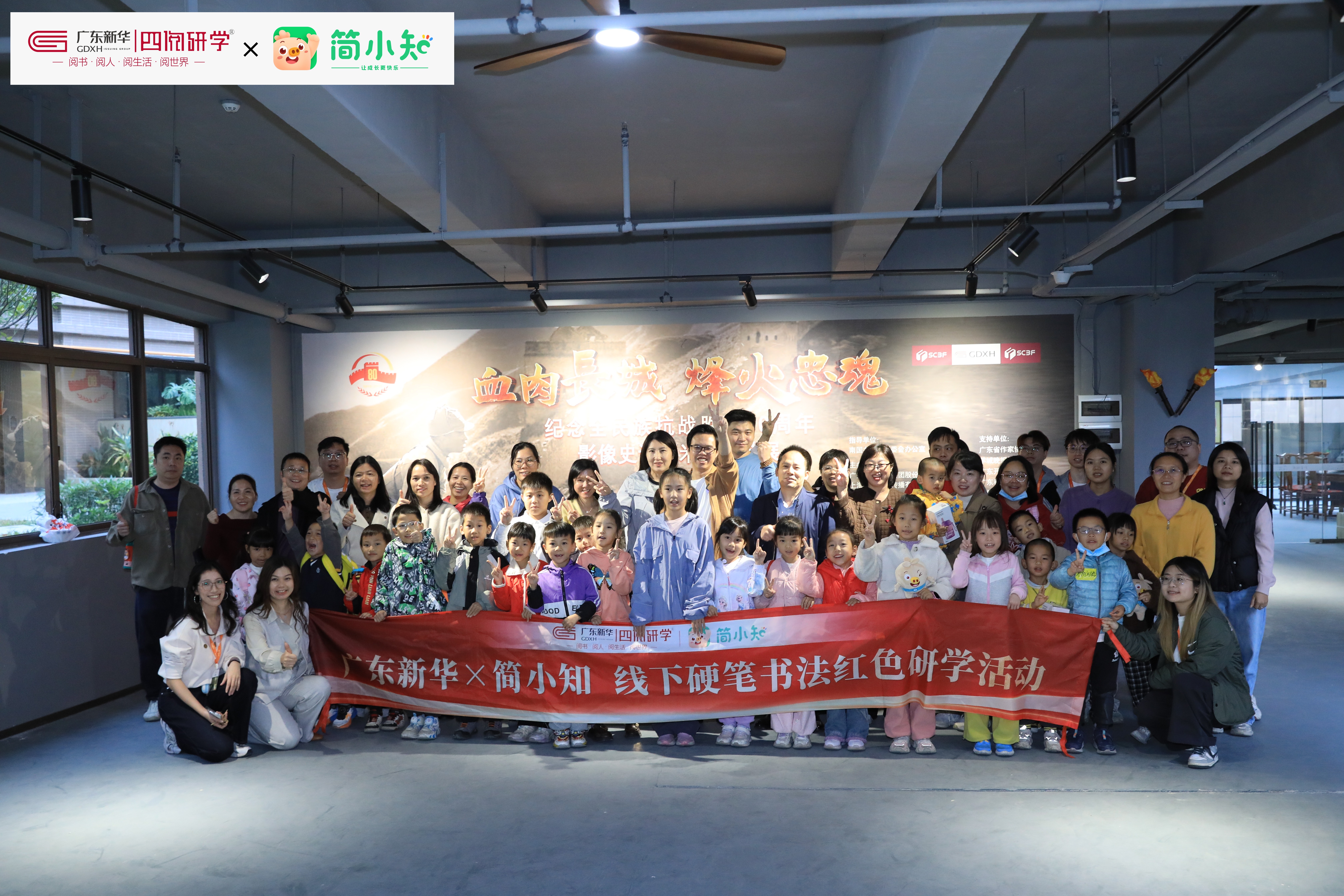 (广东新华×简小知硬笔书法红色研学活动现场大合照)